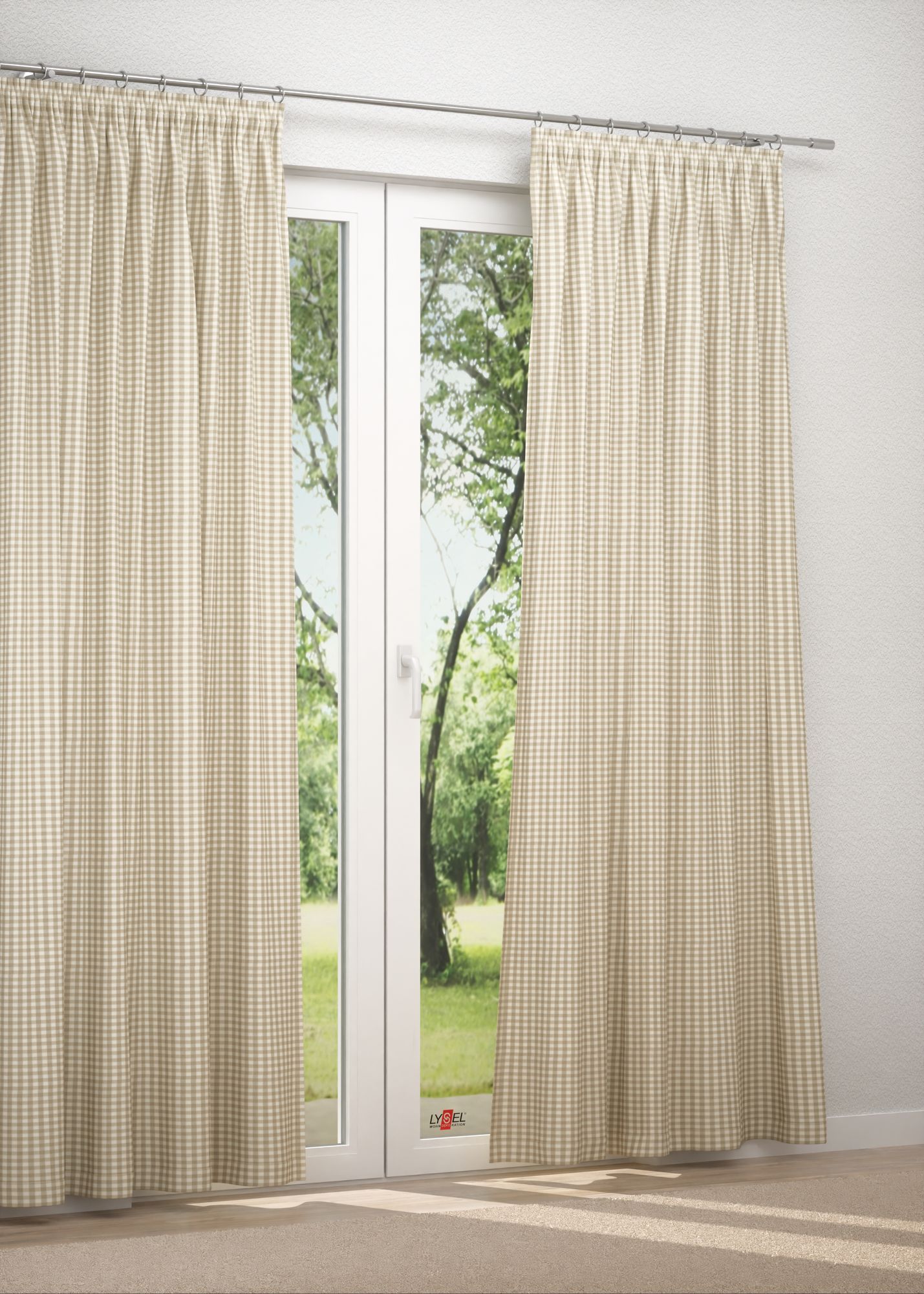 Ein klassisches Karomuster auf beiden Seiten machen dieses Modell attraktiv und vielseitig verwendbar. Das Design strahlt jede Menge Gemütlichkeit aus und wirkt als Kissenbezug genauso geschmackvoll wie als Fensterschmuck. Es drängt sich nicht in den Mittelpunkt und überlässt anderen Accessoires die Hauptrolle in der Raumgestaltung. Als Raffrollo oder Gardinenschal in Maßfertigung kann der Stoff mit angenehmer Lichtdurchlässigkeit punkten. Abhängig vom gewählten Farbton wird Sonnenstrahlung angenehm getönt und leicht gedämpft. Ein blickdichter Schutz Ihrer Privatsphäre ist dabei jederzeit gewahrt. Selbst bei künstlicher Beleuchtung können neugierige Nachbarn nur grobe Umrisse erkennen. Das Mischgewebe aus Polyester und Baumwolle ist strapazierfähig und pflegeleicht. Reinigen können Sie es bei 30°C im Schonwaschgang.
