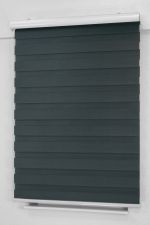 Das Doppelrollo erhält seinen Namen durch die beiden Lagen gestreiften Stoffes, die hintereinander vor dem Fenster liegen. Die Streifen besitzen eine Breite von 7,5 cm und sind abwechselnd undurchsichtig und transparent. Sie werden beim Bedienen so hintereinander gelegt, dass sie sich abwechselnd ergänzen, wenn die Sichtlinie unterbrochen werden soll, oder aber übereinander gelegt werden, wenn Licht und Sicht wieder freigegeben werden sollen. Die Bedienung geschieht über eine links oder rechts integrierte Bedienkette. Mit ihr werden die Streifen gegeneinander verschoben oder die Gesamtfläche aufgezogen. Diese Methode geht besonders leicht von der Hand. Vor allem Orte an denen möglichst schnell Licht- oder Sichtschutz zur Verfügung stehen muss – wie etwa Bäder – profitieren. Das Montageprofil mit Blende, auf welchem Rollowelle, Stoff und Mechanik sitzen, kann ganz einfach an die Wand oder unter die Decke montiert werden. Das Doppelrollo bietet eine moderne Erscheinung, die durch seine Funktionsweise gekonnt unterstützt wird.