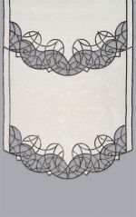Mit diesem Gardinenmodell aus Plauener Spitze® erhalten Sie einen Fensterschmuck, der nicht nur sehr elegant aussieht, sondern mit dem Sie auch viele kreative Möglichkeiten haben, damit flexibel in der Raumgestaltung bleiben. Da es sich um Rapportware handelt, steht Ihnen zum Beispiel frei, den Scheibenhänger durch eine dekorative Kurzgardine oder einen Flächenvorhang mit gleichem Motiv zu ergänzen. Abstrakte Kringel, die sich an zwei Stellen der Rapporte wild verschlungen und leicht schimmernd durch den Stoff ziehen, sorgen für ein exklusives, gleichzeitig sehr vitales Erscheinungsbild. Der gebogte untere Abschluss harmoniert perfekt mit dem Muster, welches an beiden Seiten von zwei Doppellinien gesäumt ist. Dank unterschiedlicher Farbvarianten lassen sich die Kringel dezent oder kontrastreich in Szene setzen. Die Transparenz des Polyesters verspricht ein reizvolles Spiel von Licht und Schatten und lässt Ihre Räume lange hell und freundlich bleiben. Erhältlich ist der maßgefertigte Behang in verschiedenen Größen. Der Stangendurchzug am oberen Abschluss ermöglicht ein einfaches Anbringen am Fenster und ein genauso schnelles Entfernen, zum Beispiel, wenn Sie den Stoff schonend in der Maschine waschen wollen.
