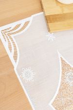 Dieses hübsche Tischdeko Modell von Plauener Spitze® ist mit seinen filigranen Verzierungen und glitzernden Elementen eine perfekte Ergänzung für die Advents- und Weihnachtszeit. Im Shop finden Sie das Design als Tischdecke, Tischläufer und kleines Deckchen. Die geschwungenen Formen mit spitzen Zacken können an Sterne erinnern, die spitz zulaufenden Formen sind erneut zu finden, wenn diese direkt aneinander liegen und als tannenbaumartiges Gebilde mit feinen glitzernden Fäden verbunden sind. Im Zentrum des Designs steht der sternenförmige Rahmen, mit Fadengeflecht gefüllt und mit Schneeflocken verziert, die auch außen in den Zacken in anderer Form erneut auftauchen.