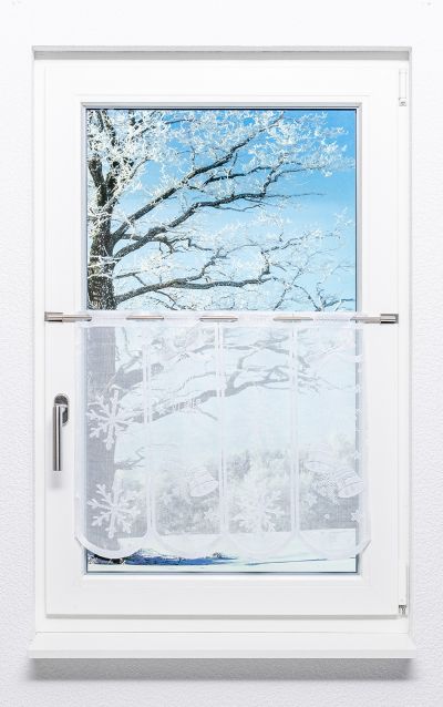 Scheibengardinen in Weiß sind echte Klassiker in Sachen Fensterdekoration. Geeignet für den Einsatz über das gesamte Jahr hinweg können diese Kurz-Gardinen in wirklich allen Räumlichkeiten genutzt werden. So kann die Scheibengardinen für Balkontüren ebenso gut eingesetzt werden wie für Fenster in den verschiedensten Größen. Als Scheibengardine für die Balkontür eignen sich dabei jedoch insbesondere jene Scheibengardinen, die lang an der Glasfläche herunterhängen. Wer ausdrucksstarke Akzente am Fenster setzen möchte, greift hier am besten zu unseren Scheibengardinen in Rot oder zu kurzen Gardinen mit roten Details. Moderner gestaltet sich das Fensterdekor indes als Scheibengardine mit Grau gestalteten Akzenten. Doch für welches Design Sie sich auch entscheiden, eines steht ganz sicher fest: Mit dem Griff zu diesen Kurz-Gardinen machen Sie definitiv nichts falsch! Überzeugen Sie sich daher gerne selbst von unserem breiten Sortiment von schönen Scheibengardinen und Bistrogardinen, um die geeignete Dekoration für Ihren Bedarf zu finden. Die Montage erfolgt hier spielend leicht mit Hilfe unserer Scheibengardinenstangen, die Sie mit wenigen Handgriffen am Fenster festklemmen und kostengünstig in unserem Onlineshop erwerben können.